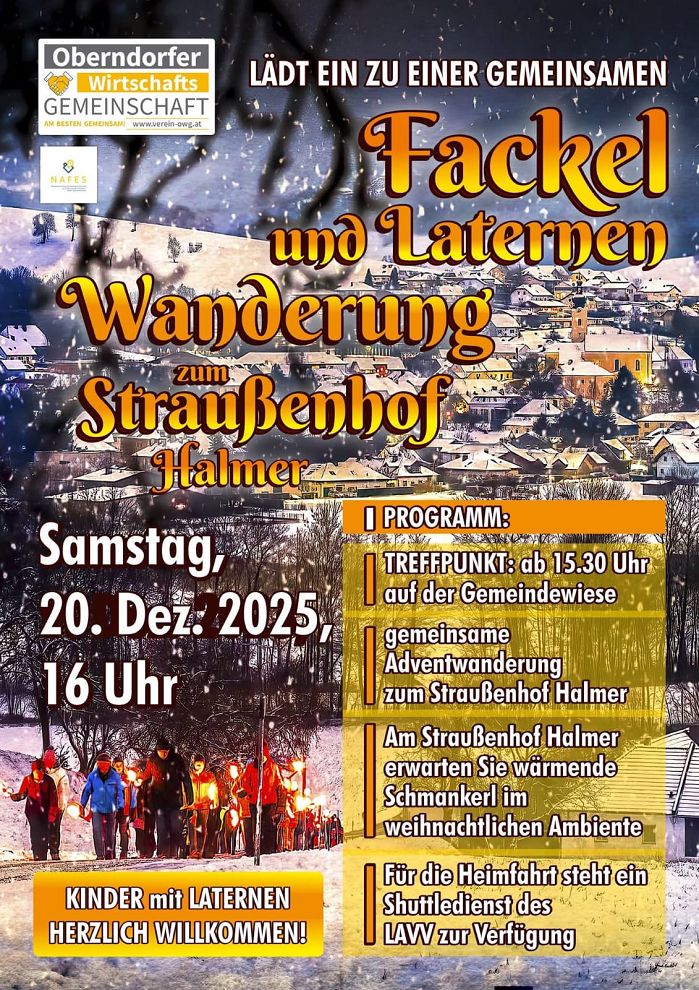 Die Oberndorfer Wirtschafts Gemeinschaft lädt auch heuer wieder zur gemeinsamen Fackelwanderung ein.