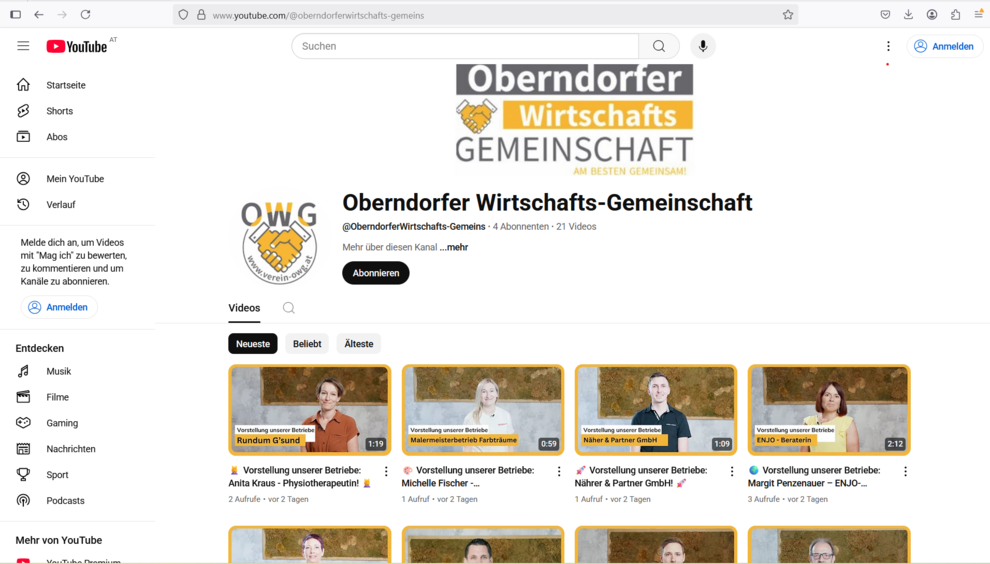 Seit kurzem hat die OWG einen eigenen Youtube Channel! Hier findest du alle Image Videos der Oberndorfer Wirtschafts- Gemeinschafts Betriebe!